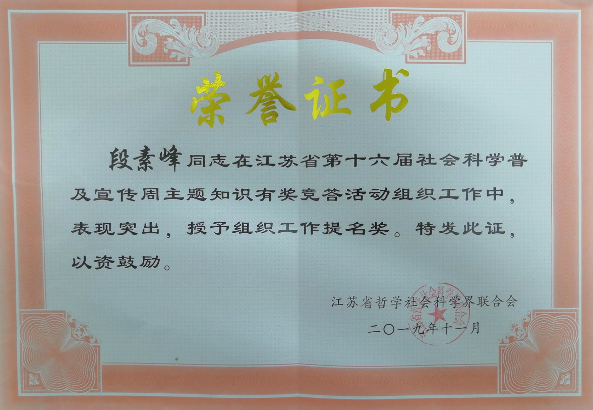 段素峰获评省第十六届社科普及宣传周主题知识竞答活动组织工作提名奖