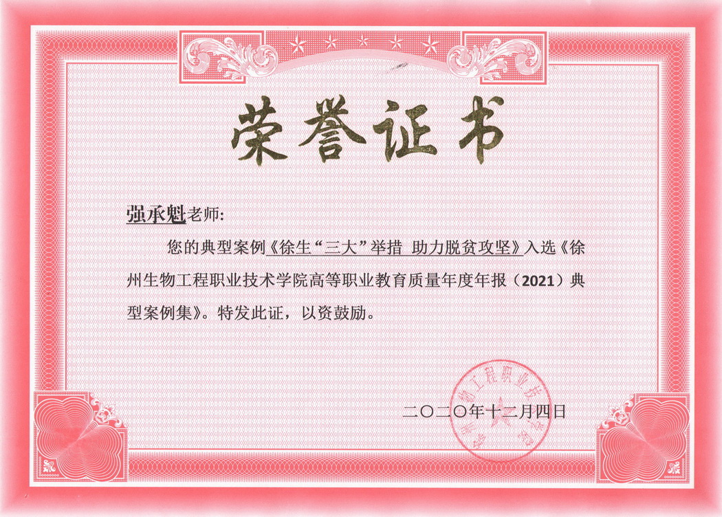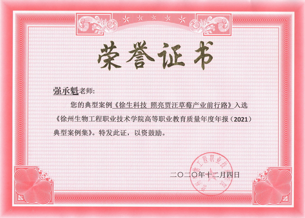12月4日,学校年度年报典型案例评选结果公布。科研处提交的“徐生三大举措,助力脱贫攻坚”“徐生科技,照亮贾汪草莓产业前行路”等2个案例成功入选《徐州生物工程职业技术学院高等职业教育质量年度年报(2021)典型案例集》。