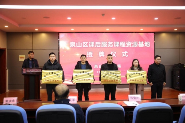 1月25日,泉山区课后服务课程资源基地授牌仪式在民安路小学举行。我校与原工程兵指挥学院、淮海战役烈士纪念塔管理中心、中国煤炭科技博物馆等11家单位成为泉山区首批课后服务课程资源基地,农林工程学院党总支书记张明参加授牌仪式。
