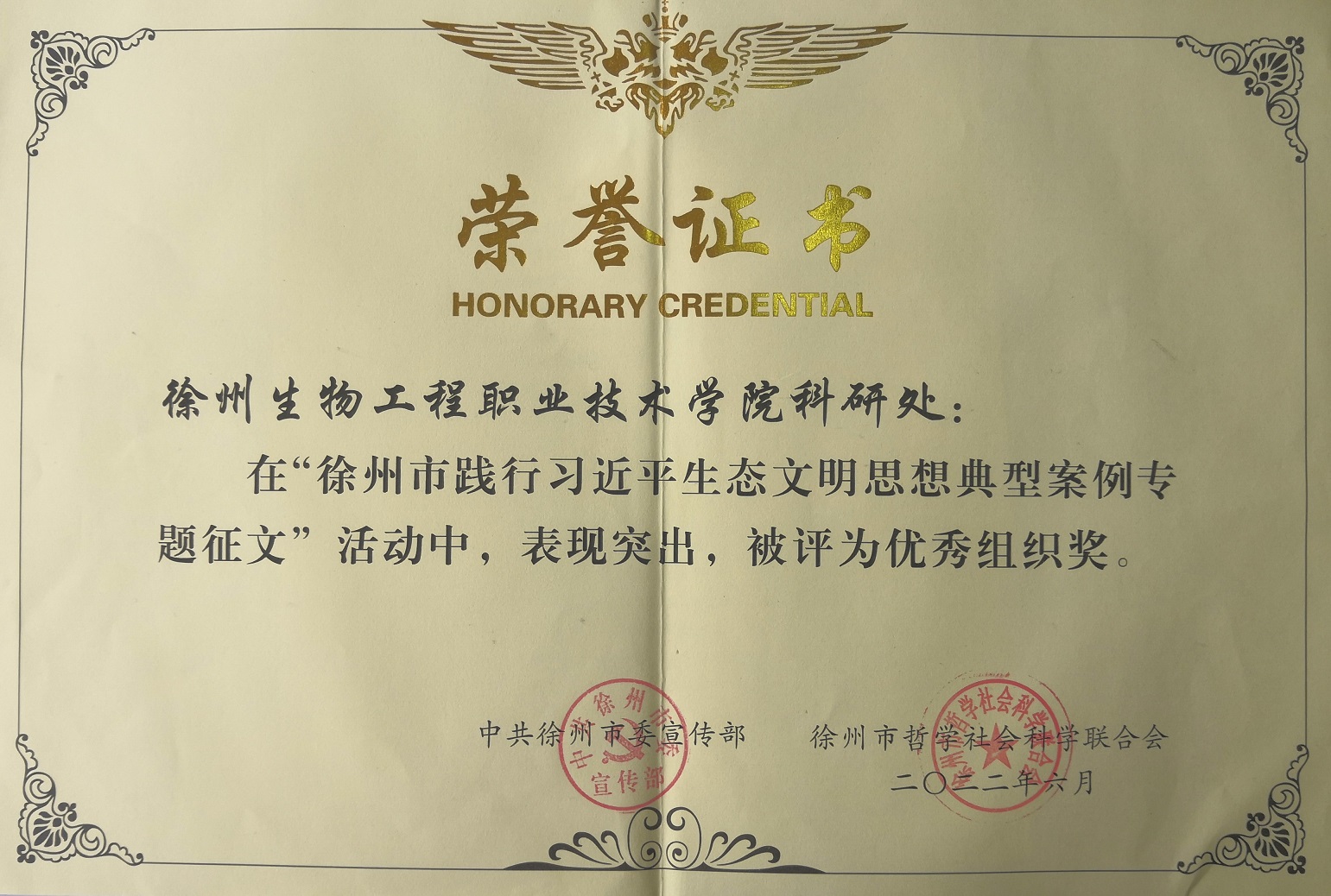 近日,在“徐州市践行习近平生态文明思想典型案例专题征文”活动中,科研处被中共徐州市委宣传部、徐州市哲学社会科学联合会评为优秀组织奖。据了解,我校提交的6篇征文全获资助,并被纳入徐州市社科基金项目管理。本次专题征文共评出35篇,其中高校17篇,我校获批资助数量位居第一。